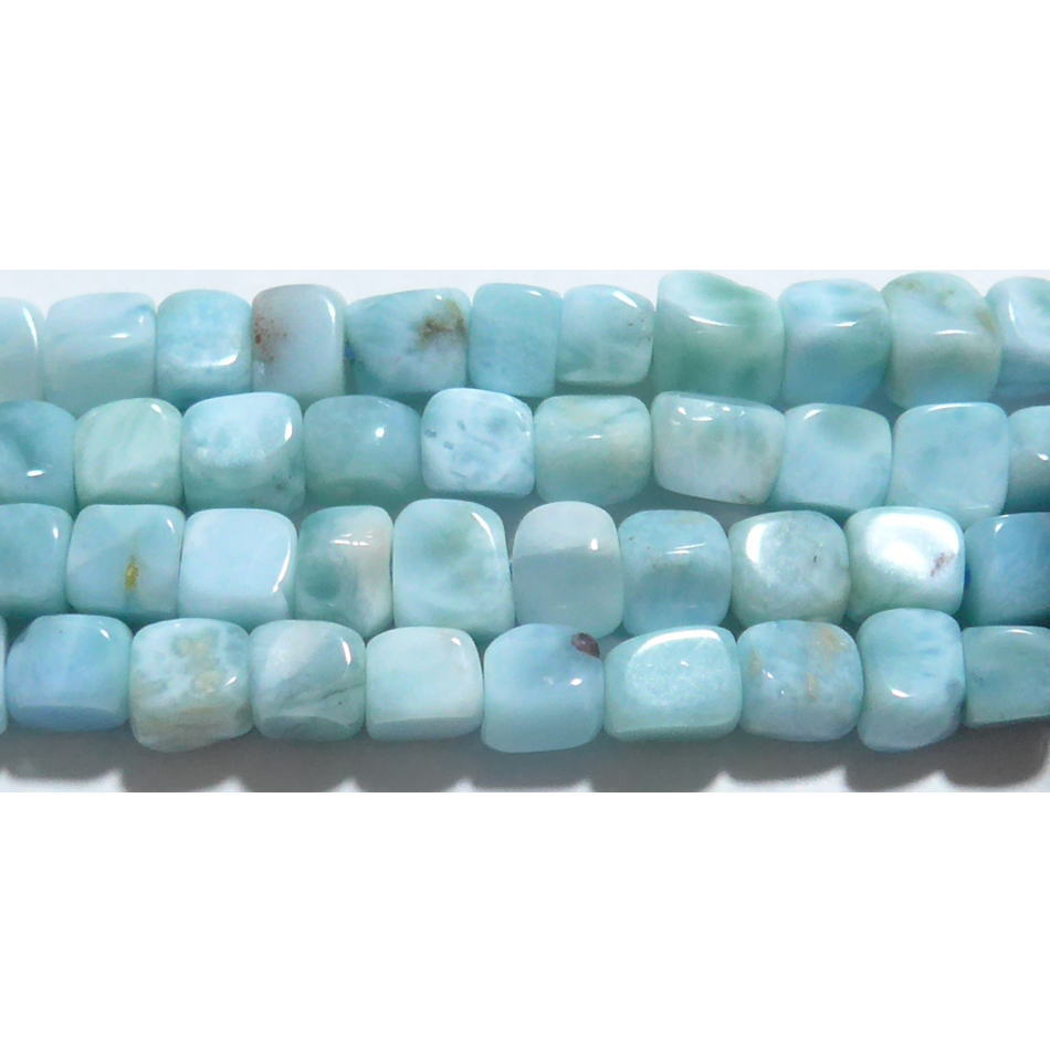 愛と平和、過去におこった辛い出来ことによる心の負担の開放、穏かさや無条件の愛と調和をもたらす。心にたまった負担の解消にも。よく茶色~白に変色する事があるが、それはトラブルや心にたまった負担を吸っているからといわれています。所々に見られる茶味は、カリブの海のように澄んでいる青みとあいまって、まるで人間の心を移しているかのようにみえます。名前の由来は、産出者の娘「ラリッサ」と美しいカリブの海「マール」